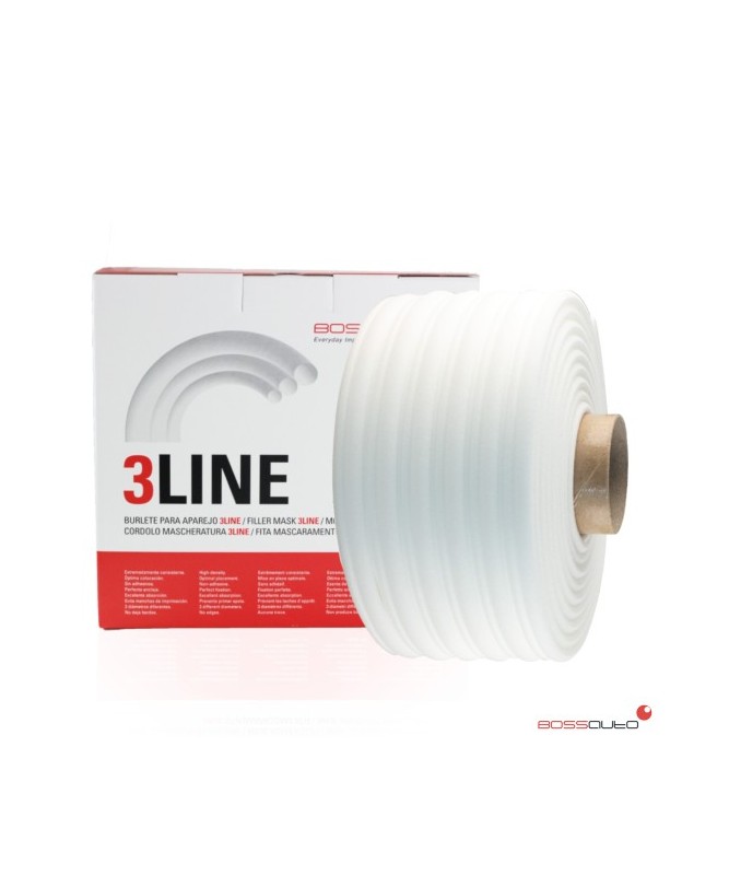 El 3LINE Burlete Bossauto 30 m – 6×5 m es una solución innovadora y versátil para el enmascarado en procesos de carrocería y pintura automotriz. Diseñado con tres diámetros distintos en una sola tira de espuma de alta densidad, este producto permite una colocación guiada, un anclaje perfecto y una excelente absorción para evitar que la imprimación y la pintura entren en zonas no deseadas durante el aparejado y repintado.