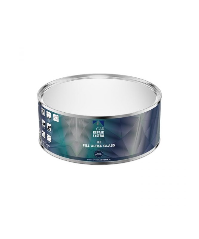 La Masilla HE Fill Ultra Glass es una masilla de poliéster con refuerzo de fibra de vidrio diseñada para trabajos de reparación en carrocería donde se necesita máxima resistencia mecánica y capacidad de relleno.
